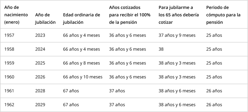 La tabla de jubilación por año de nacimiento
