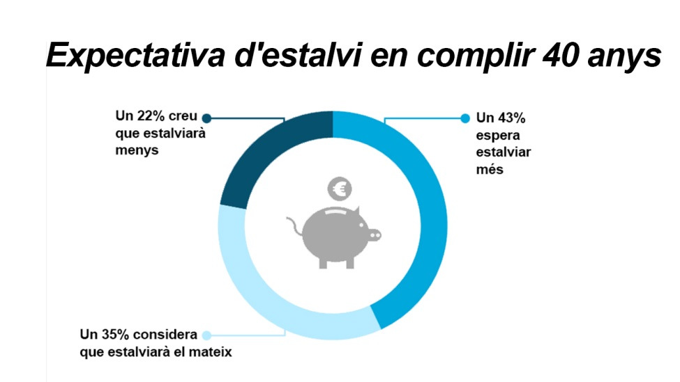 L'altra meitat no té tan bones expectatives de millorar la seva capacitat d'estalvi quan compleixi els 40. Un 35% creu que estalviarà el mateix i un 22% considera que estalviarà menys.