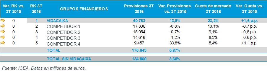 En cuanto a cuota de mercado, VidaCaixa avanzó respecto a septiembre de 2015 1,4 puntos.
