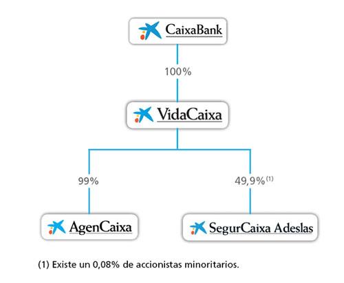 Una vez producida la fusión inversa entre VidaCaixa Grupo y VidaCaixa, la estructura societaria del grupo asegurador se racionaliza, quedando del siguiente modo: