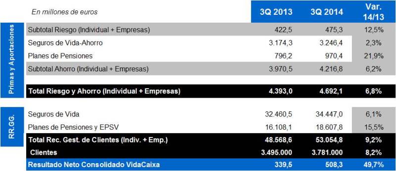 VidaCaixa cuenta con 3,8 millones de asegurados y partícipes, lo que representa un 8,2% más respecto a los nueve primeros meses de 2013.