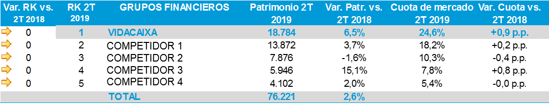 - Permanece a la cabeza en el ranking de planes de pensiones con el 24,8% del patrimonio, liderando tanto el sistema individual como el colectivo